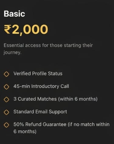 The personalized matchmaking process truly understood my values and lifestyle. I felt guided and supported, and it led me to someone who feels like my perfect partner.